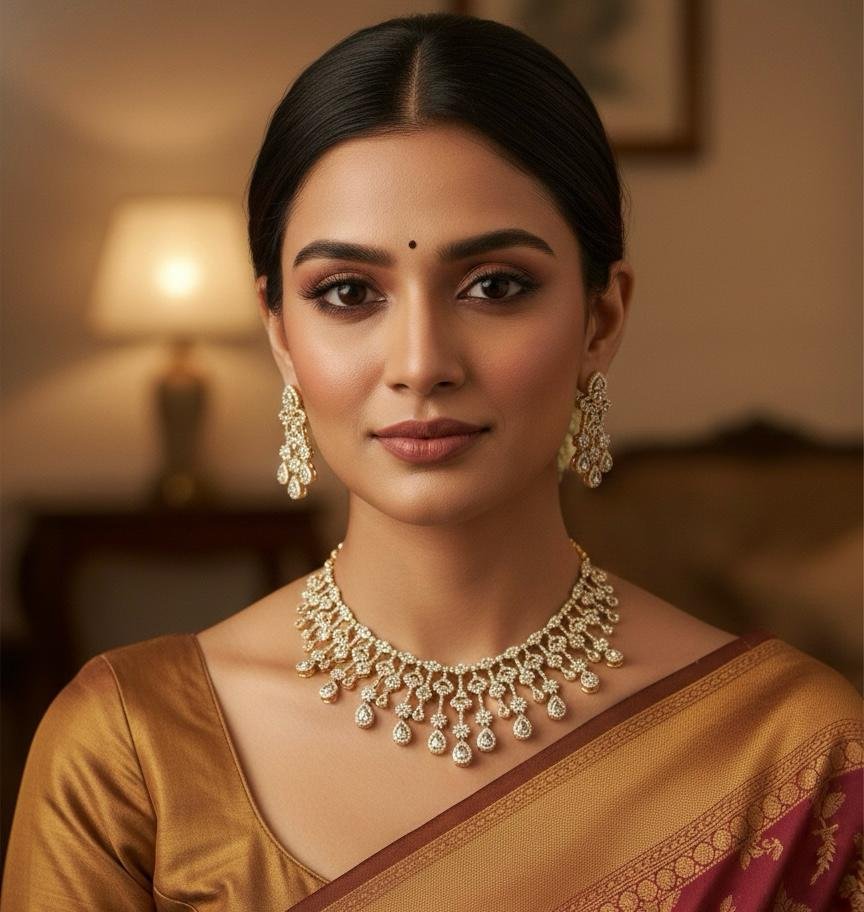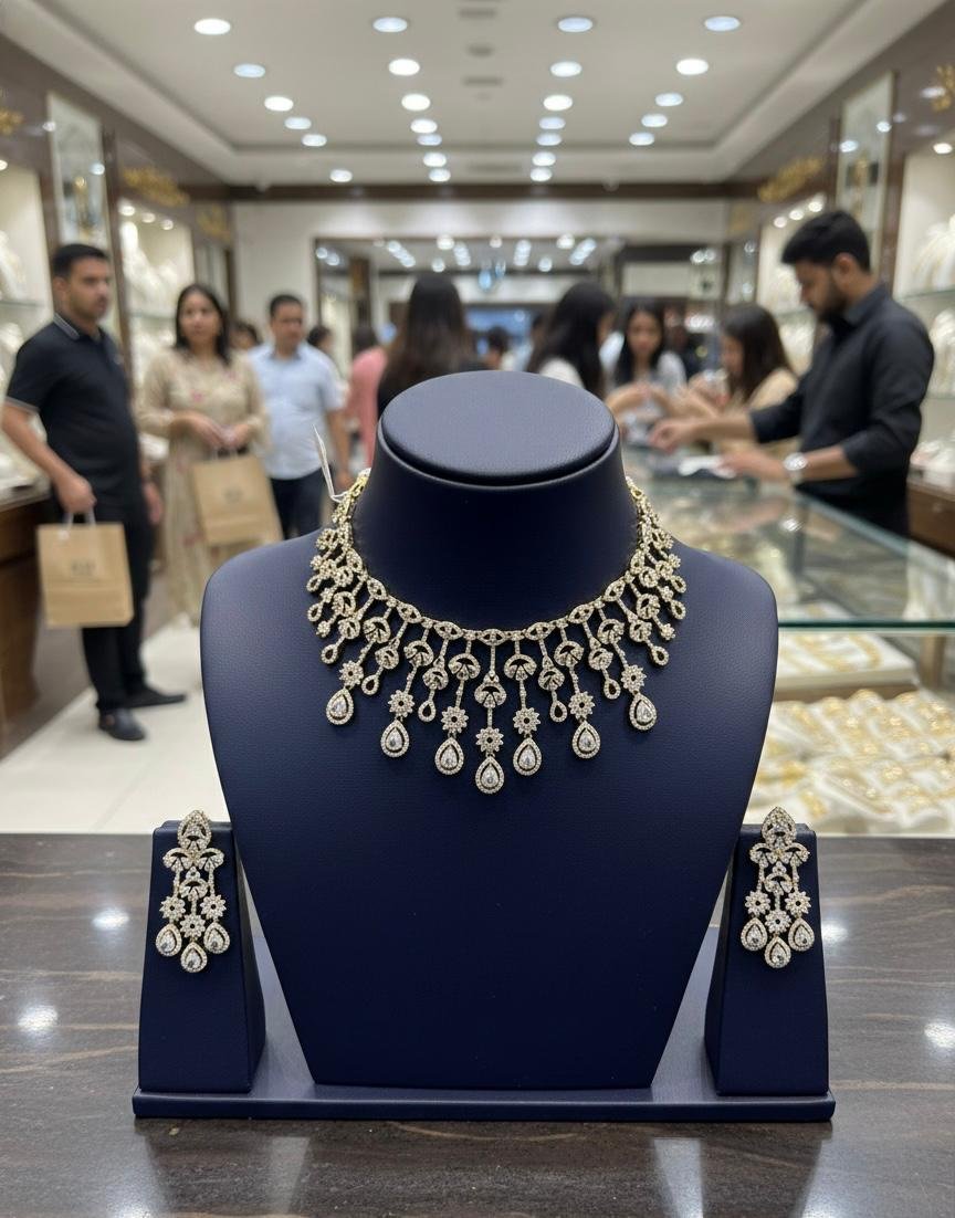 Perfect for weddings, receptions, festivals, and special celebrations, this necklace set beautifully complements sarees, lehengas, and designer ethnic wear. Lightweight, comfortable, and crafted for lasting shine, it offers a truly luxurious jewellery experience.