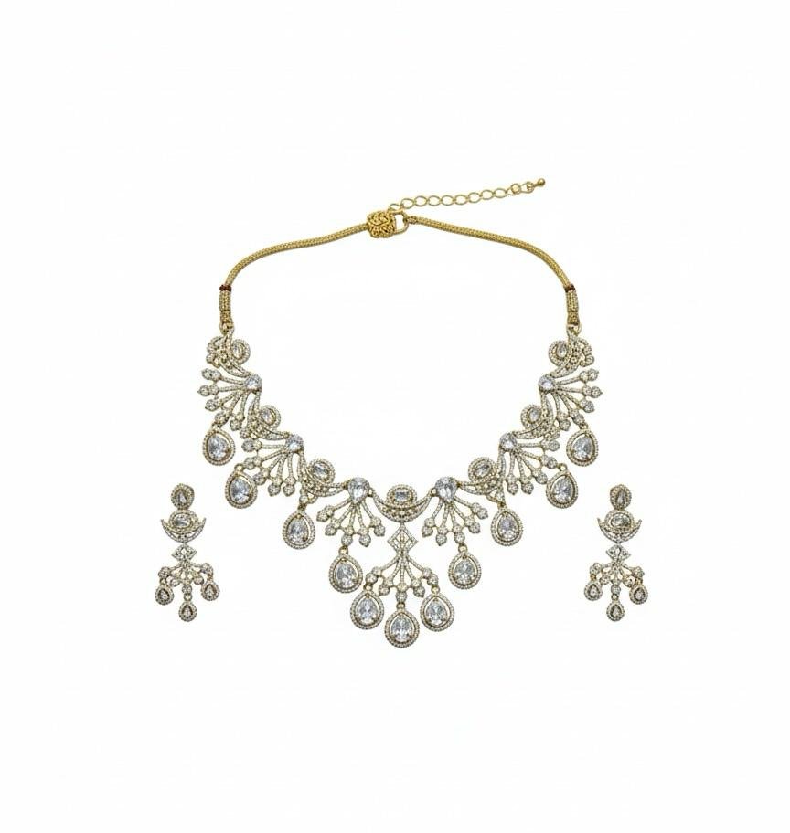 American Diamond Antique Gold Polish AD Necklace Jewellery Set