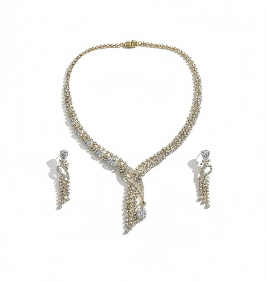 American Diamond Antique Gold Polish AD Necklace Jewellery Set