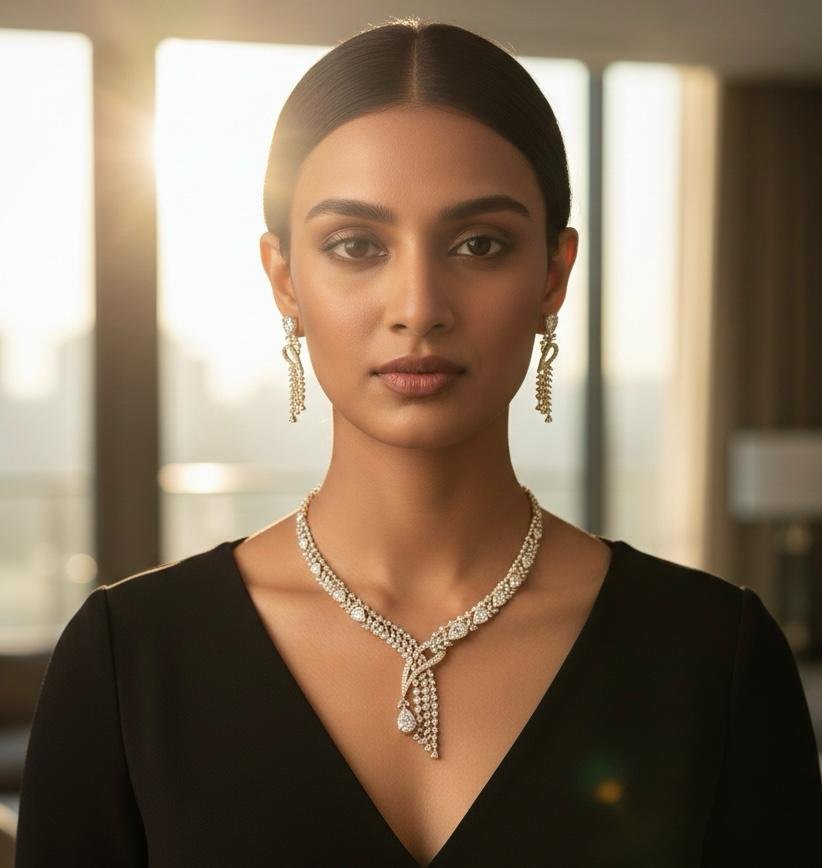 Perfect for weddings, festivals, receptions, and special celebrations, this necklace set complements sarees, lehengas, and ethnic outfits beautifully. Lightweight, comfortable, and designed for long-lasting shine, it combines elegance, grace, and value.
