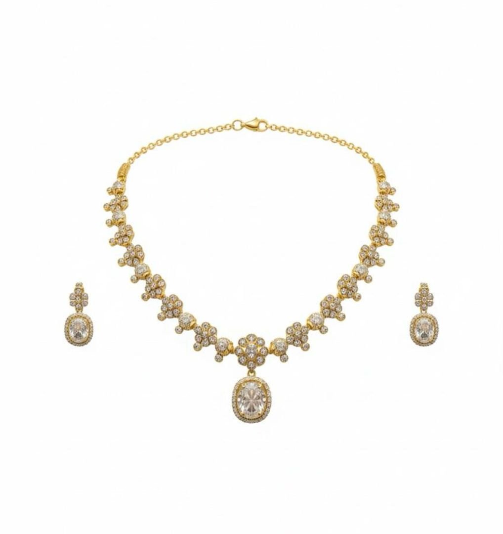 American Diamond Antique Gold Polish AD Necklace Jewellery Set
