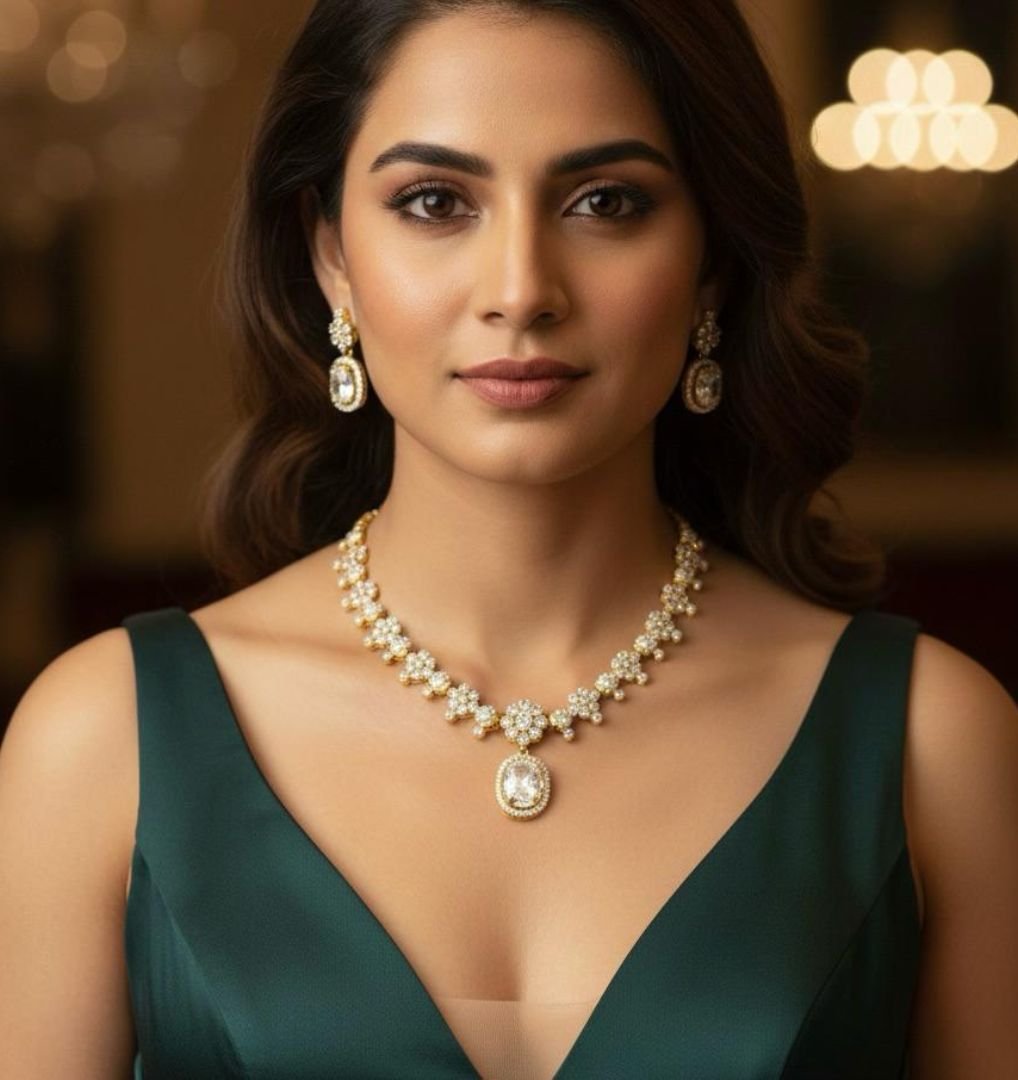 Ideal for weddings, festivals, parties, and special occasions, this necklace set pairs beautifully with sarees, lehengas, and ethnic wear. Lightweight and comfortable, it offers a stunning look at an affordable price.