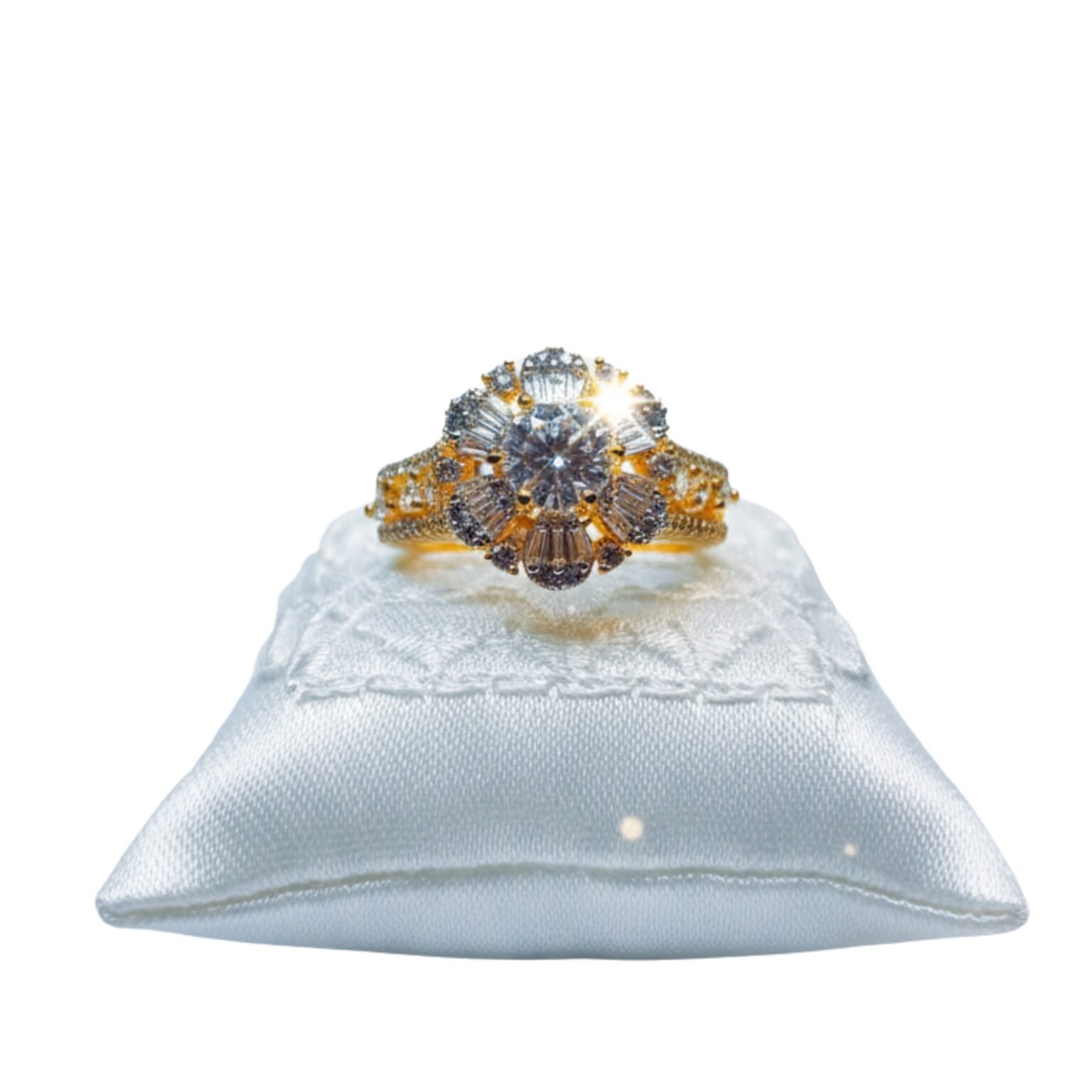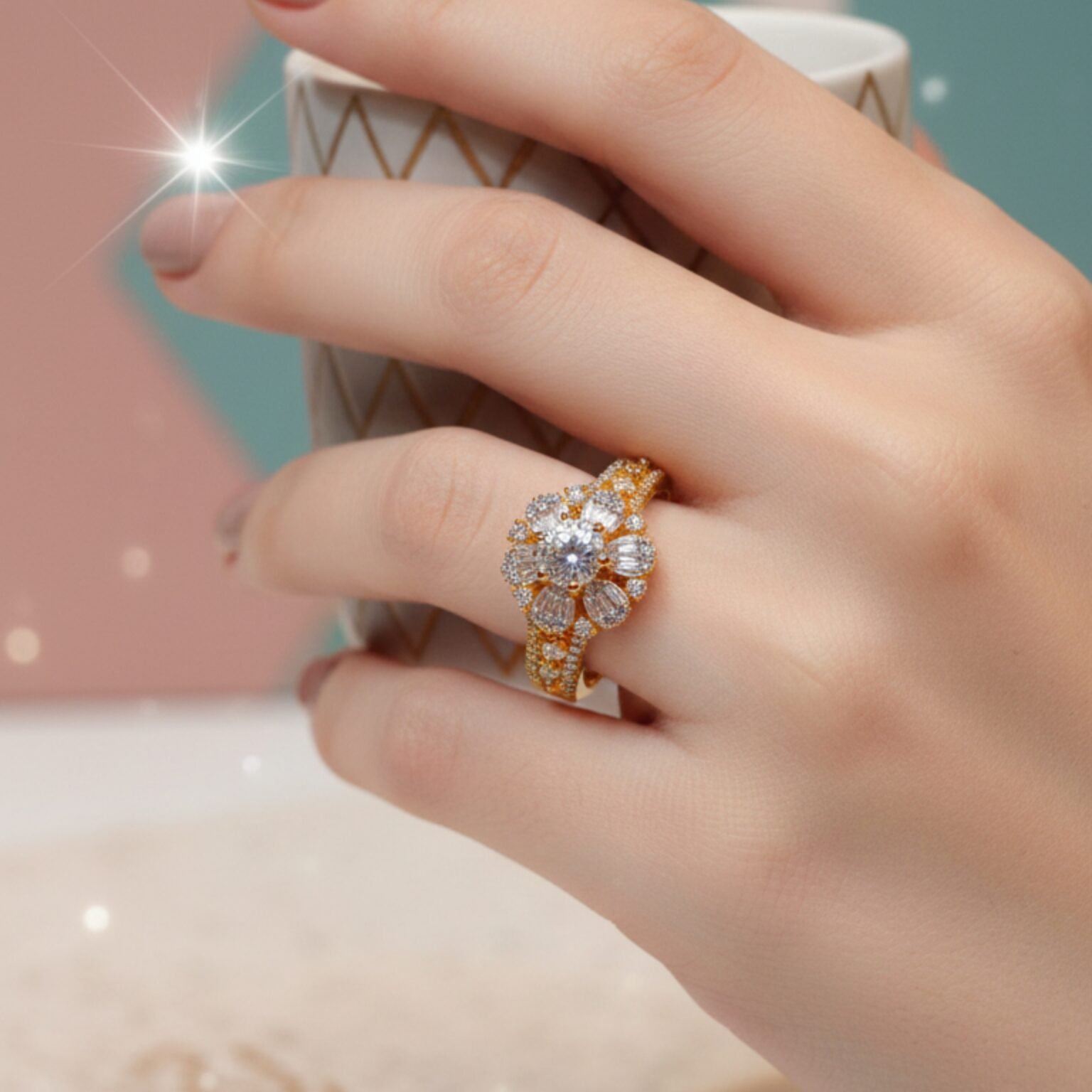 Beautiful American diamond ring featuring a premium gold plated design and adjustable size for comfortable wear.