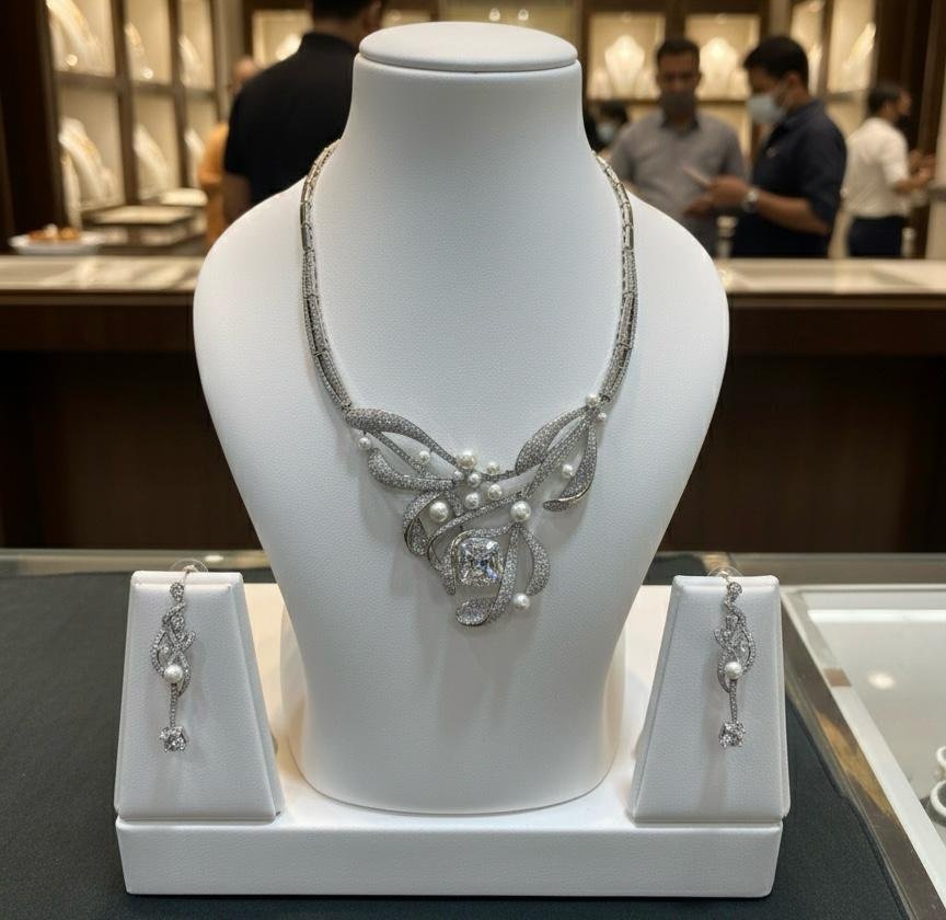 Designed for weddings, receptions, parties, festive occasions, and special events, this necklace set pairs perfectly with sarees, lehengas, gowns, and designer outfits. The silver plating enhances the overall brilliance and gives a classy, modern finish.