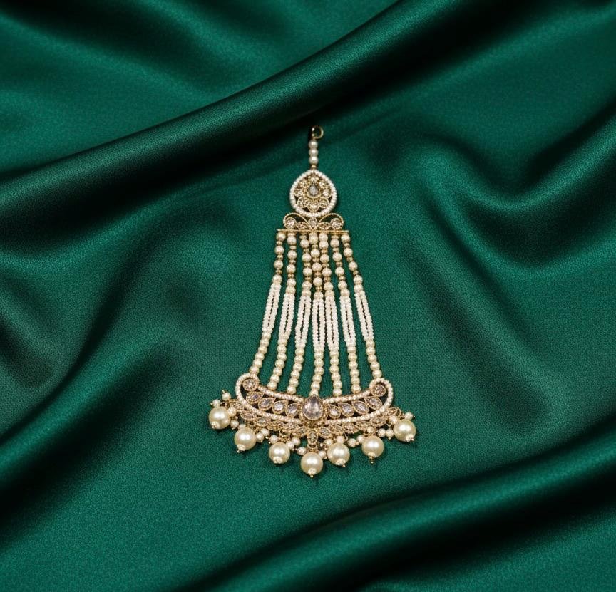 Elevate your ethnic look with this beautiful antique polish Passa featuring intricate pearl detailing. The vintage design adds a classic, regal, and festive appeal, making it ideal for weddings, engagements, festivals, and special occasions.
