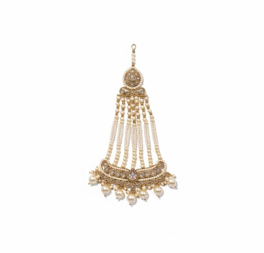 Elegant antique polish Passa adorned with delicate pearl work, perfect for weddings, festivals, and ethnic occasions.