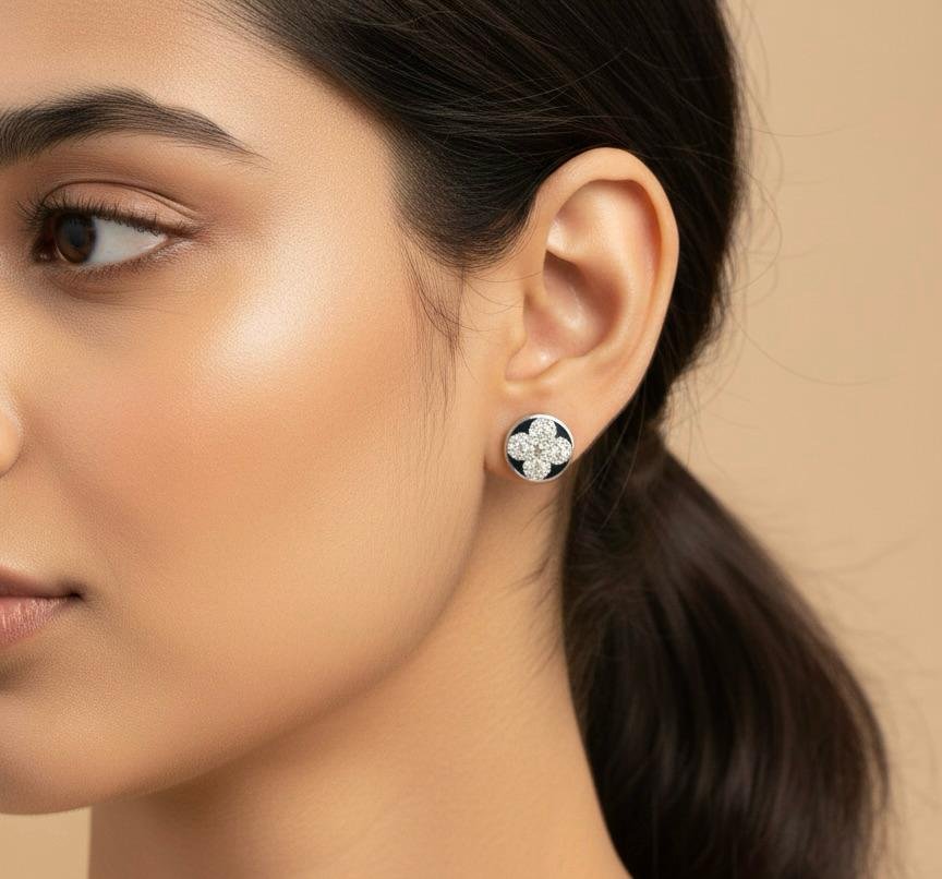 Black American Diamond Silver Plated Stud Earrings – Stylish AD Tops
