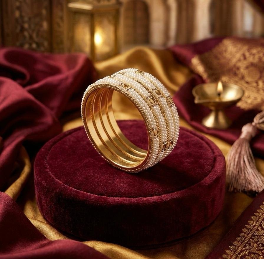 This 4-piece designer bangle set is perfect for women who love elegant and traditional jewellery with a modern touch.