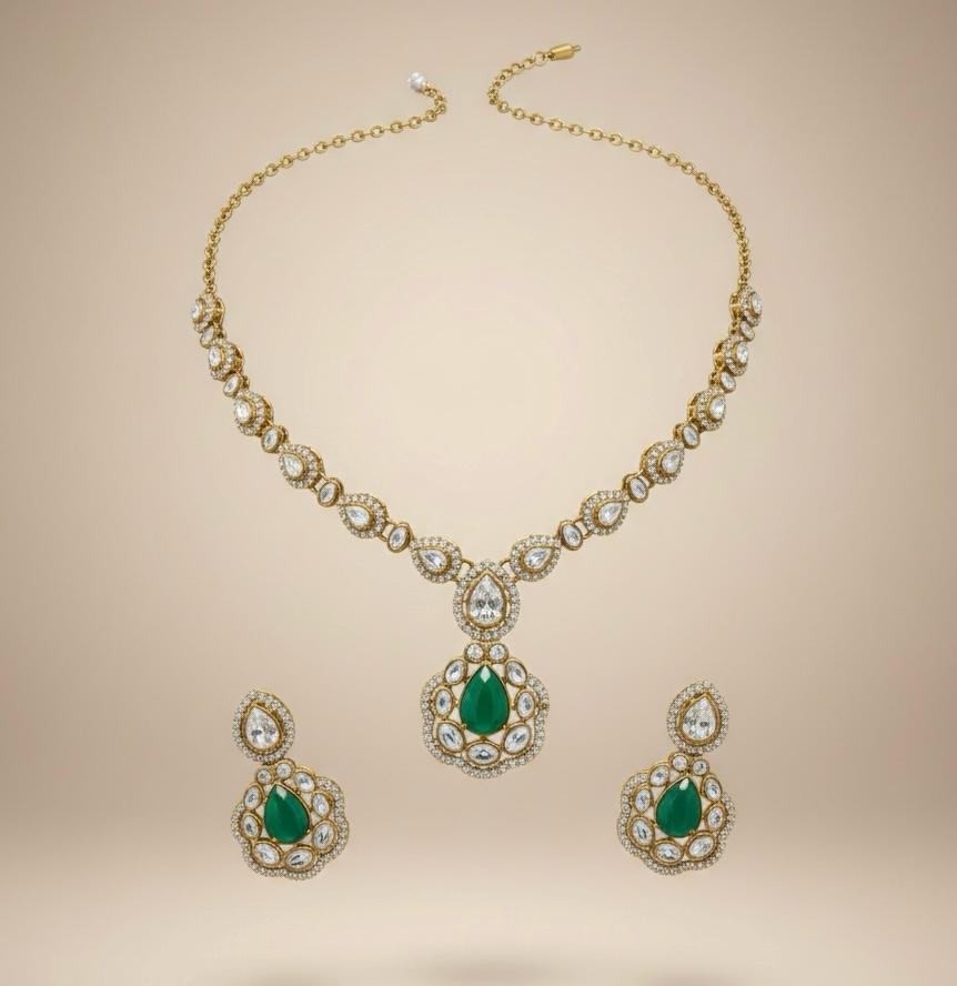 Emerald Glow American Diamond Necklace Set