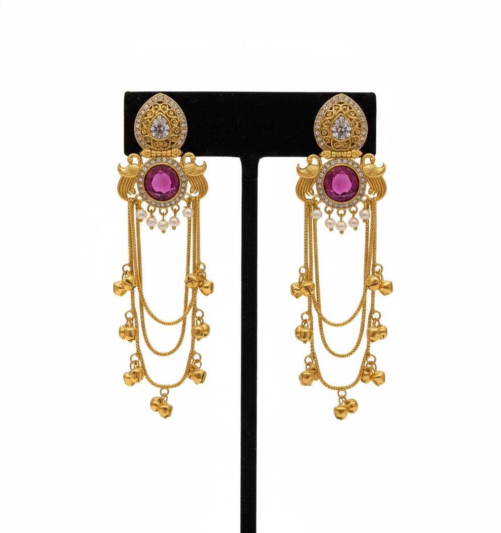 Elegant Kashmira earrings in Pink Rani colour with intricate design.