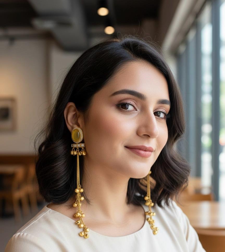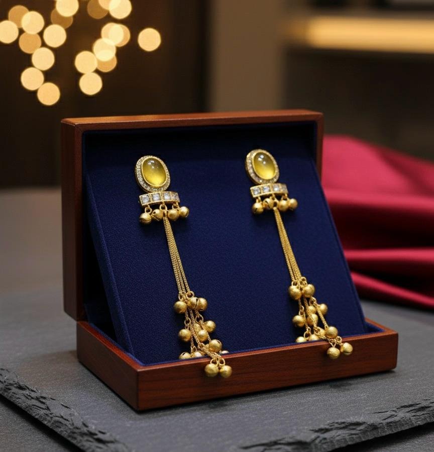 Add a bright and elegant touch to your look with these Kashmira earrings featuring yellow stones. Designed to be lightweight and comfortable, these earrings are perfect for daily wear, weddings, parties, and festive occasions. Their vibrant colour and intricate design make them a charming addition to any outfit.