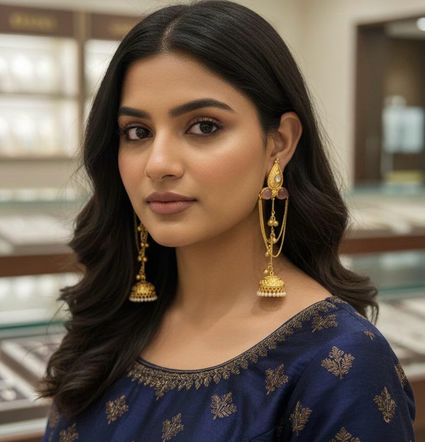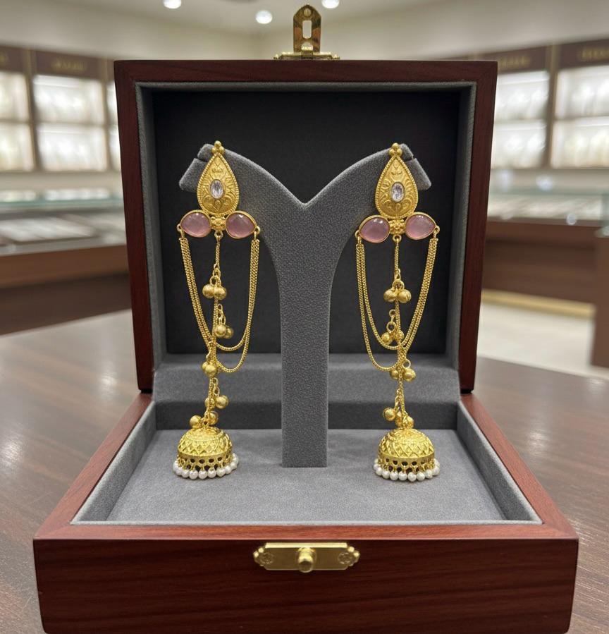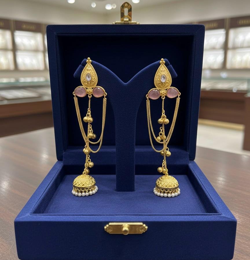Make a statement with these elegant Kashmira long earrings in a stunning radium colour. Crafted with precision and a premium finish, these earrings add charm and sophistication to any outfit. Lightweight and comfortable, they are perfect for weddings, parties, festive occasions, and gifting.