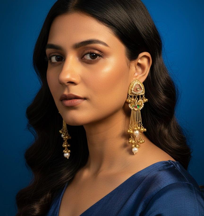 The long, elegant design makes them an ideal accessory for weddings, festive occasions, parties, and cultural events. Lightweight and comfortable to wear, these earrings complement sarees, lehengas, and ethnic fusion outfits effortlessly. A perfect choice for those who love timeless style with a modern touch.