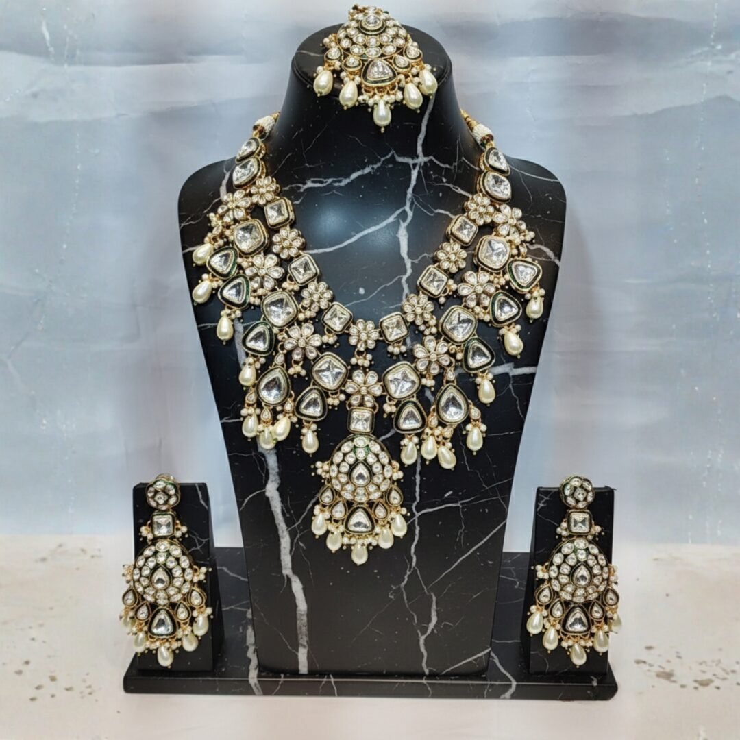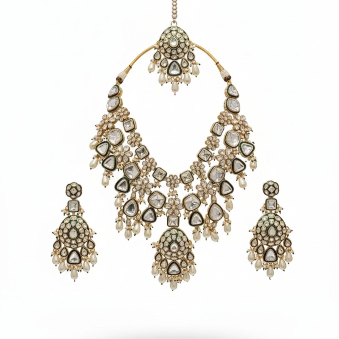 Complete Jewellery Set: Includes Heavy Necklace + Matching Earrings (Maangtikka optional).