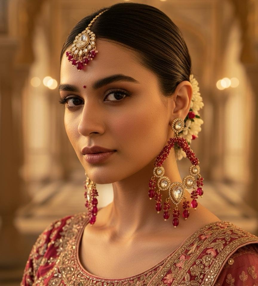Add elegance and charm to your look with these long earrings featuring delicate pearl work and vibrant red ruby colour accents. Crafted with precision and a lightweight design, these earrings are perfect for weddings, parties, festive occasions, or gifting. Their striking design adds a sophisticated touch to any outfit.
