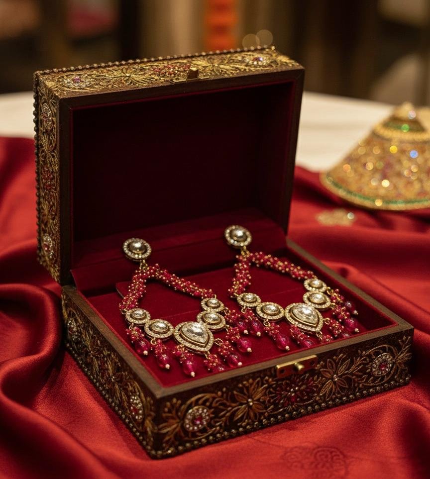 Beautiful pearl detailing with red ruby colour accents