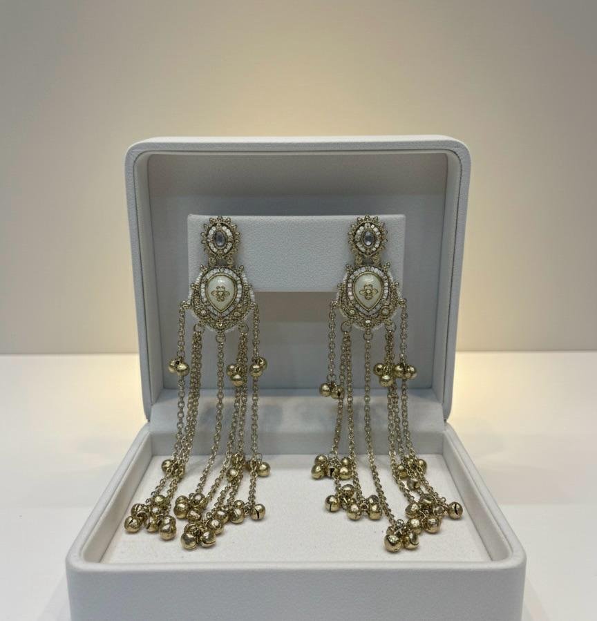 Add a touch of elegance to your look with these long Kashmira style earrings in beautiful two-tone shades. Designed with intricate detailing and a premium finish, these earrings are lightweight and comfortable for extended wear. Perfect for weddings, festivals, parties, or gifting, they bring a classy and stylish flair to any outfit.