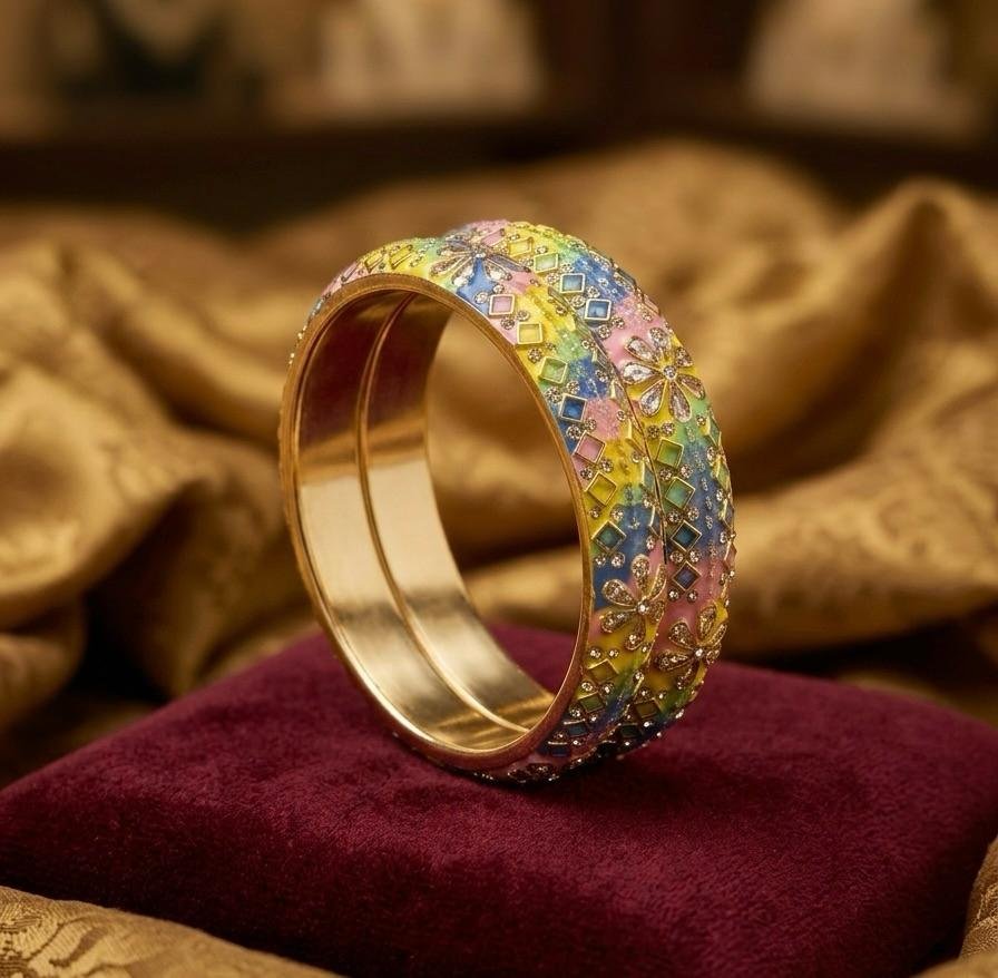 This designer bangle pair is perfect for women who love colorful, elegant, and traditional jewellery.