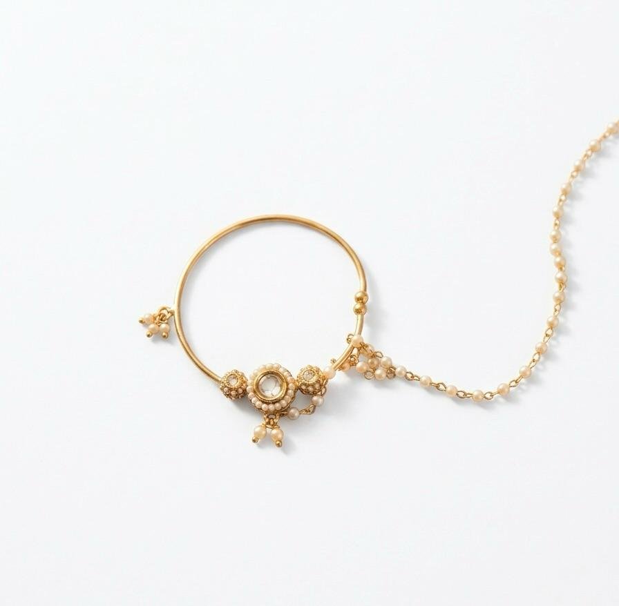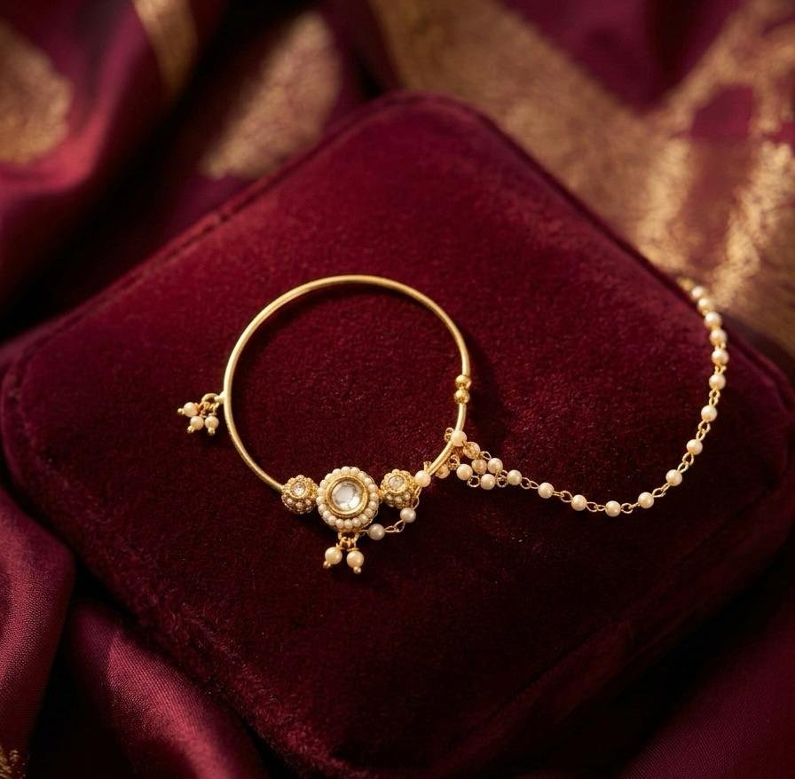 The graceful chain adds a traditional bridal touch, making it a perfect accessory for weddings, receptions, and festive occasions. Lightweight yet eye-catching, this nath enhances your ethnic look with timeless charm.