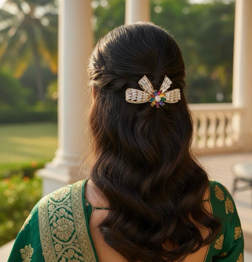 Perfect for weddings, festive celebrations, parties, and special occasions, this backclip offers secure wear while enhancing both ethnic and fusion looks. Its vibrant design makes it a standout accessory for festive styling.