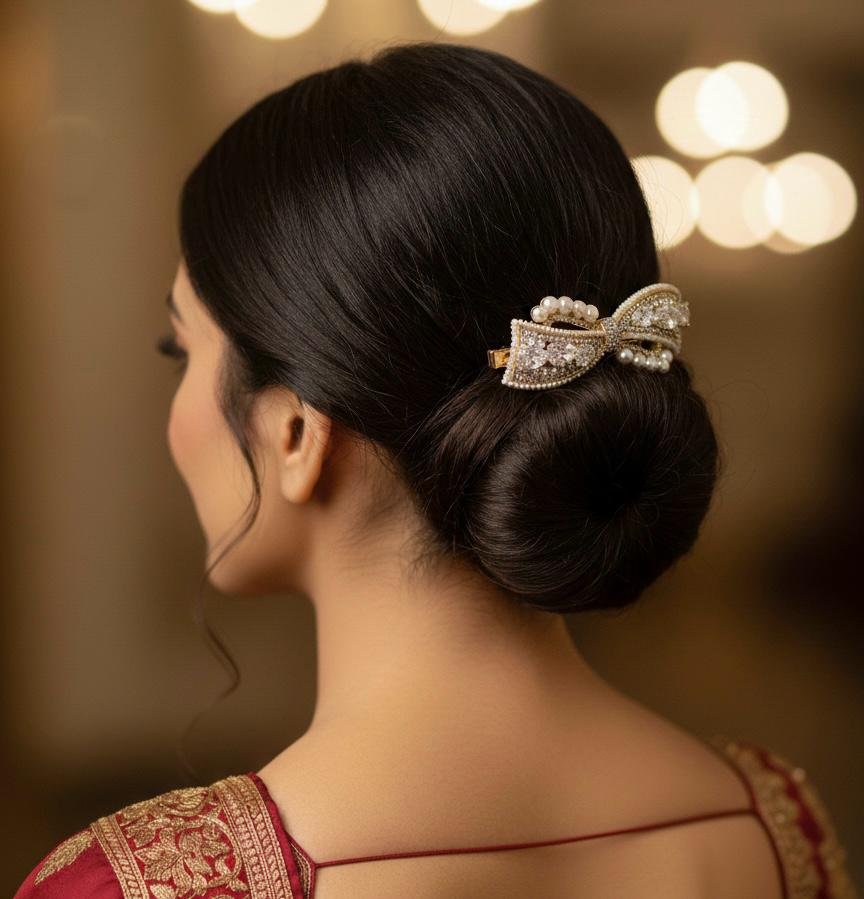 Designed for secure and comfortable wear, this backclip is perfect for weddings, festive occasions, parties, and special celebrations. Its classy design pairs effortlessly with ethnic and fusion outfits, making it a must-have premium hair accessory.